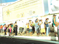 Foram distribuídas 15 mil fichas de inscrição, na mesma havia o dia, a hora e os doscumentos necessários para o cadastro. a quantidade de fichas anunciadas, não conseguiu atender a demanda da população alagoana, que mesmo com o anúncio dado no dia 10 que não havia mais fichas para distibuir, contunuavam nas filas. Uma mulher com mais esperança, procurava no chão uma ficha que alguém pudesse ter perdido ( ai sim pude perceber a dimensão da miséria no Estado).